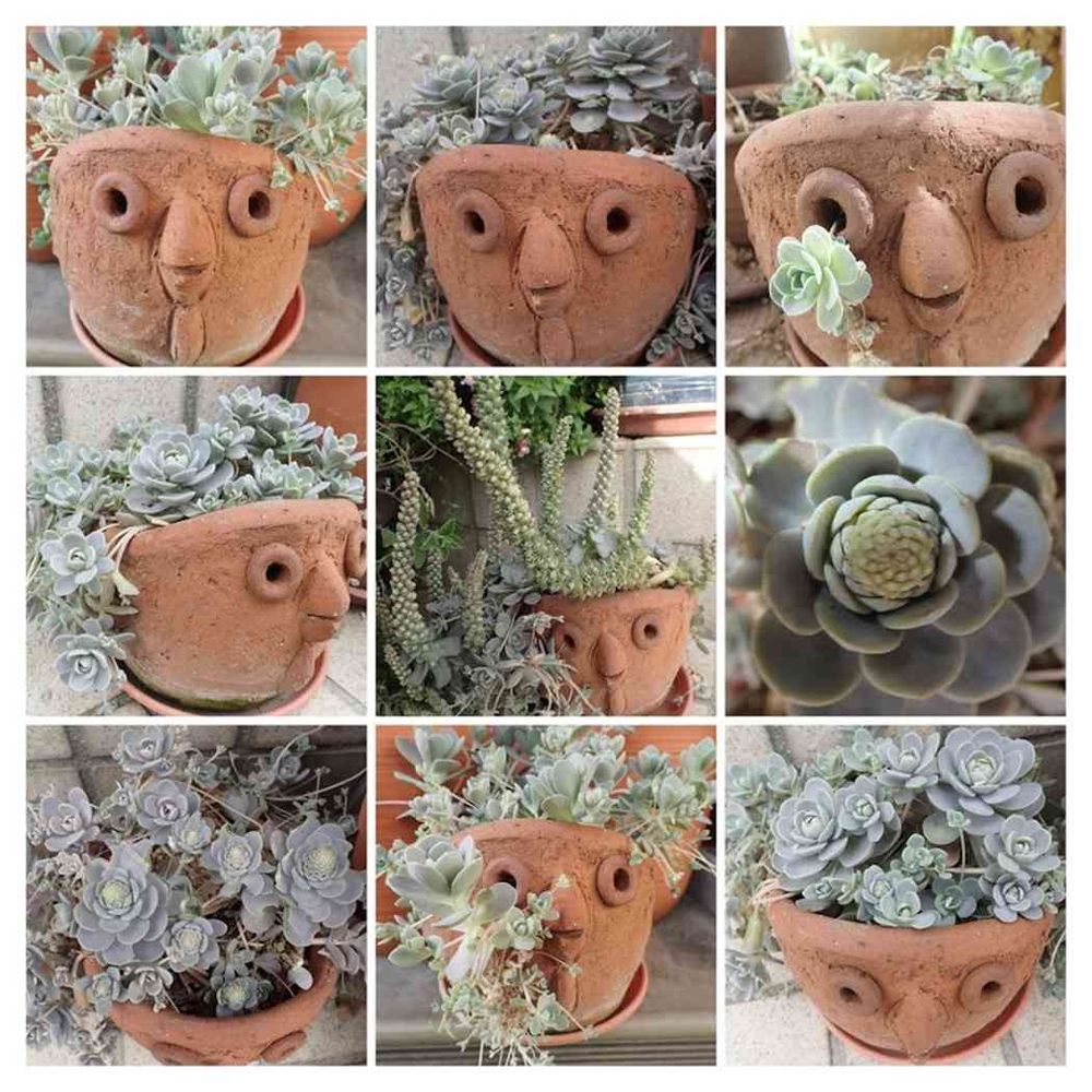 さん、コメントをありがとうございます(^^)この鉢のへんてこな造形に惹かれて買ってきたものの、乾きやすくて、何を植えても上手くいかなかったんですが、子持ち蓮華を植えてみたら、相性が良かったと見えて、こういう状況になりました。でももう、穴からは出てきてほしくないのですが。。。(^^;;;;;