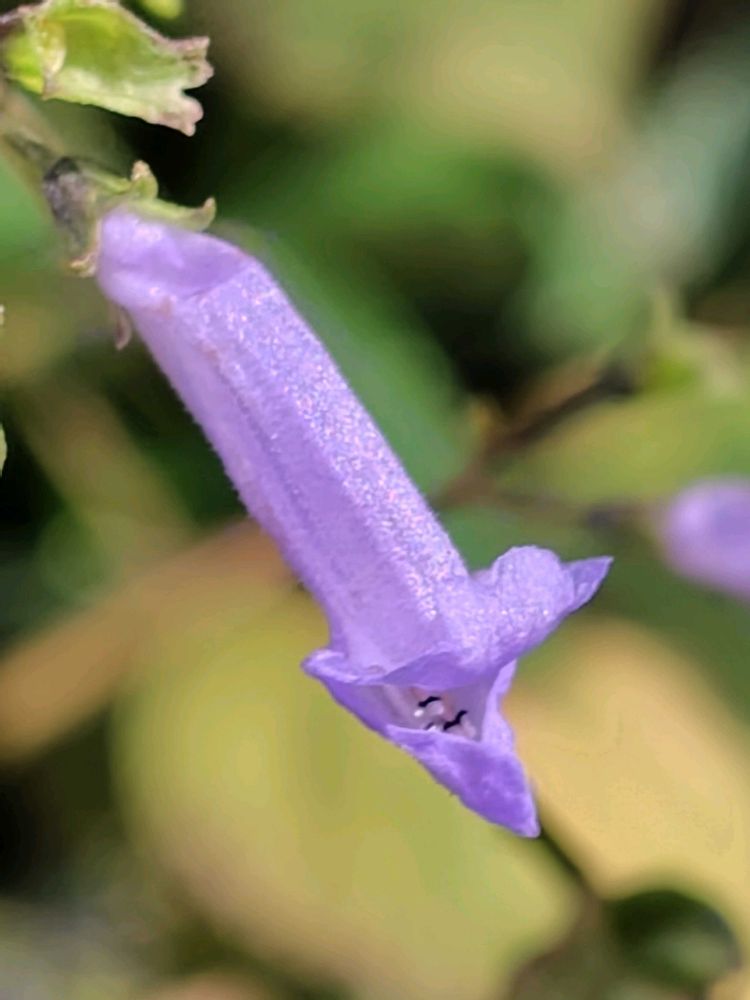 花冠は長さ16〜18mmになる2唇形で筒部は長く、上唇は反り返って浅く4裂し、下唇はボート形になり前に突き出る。