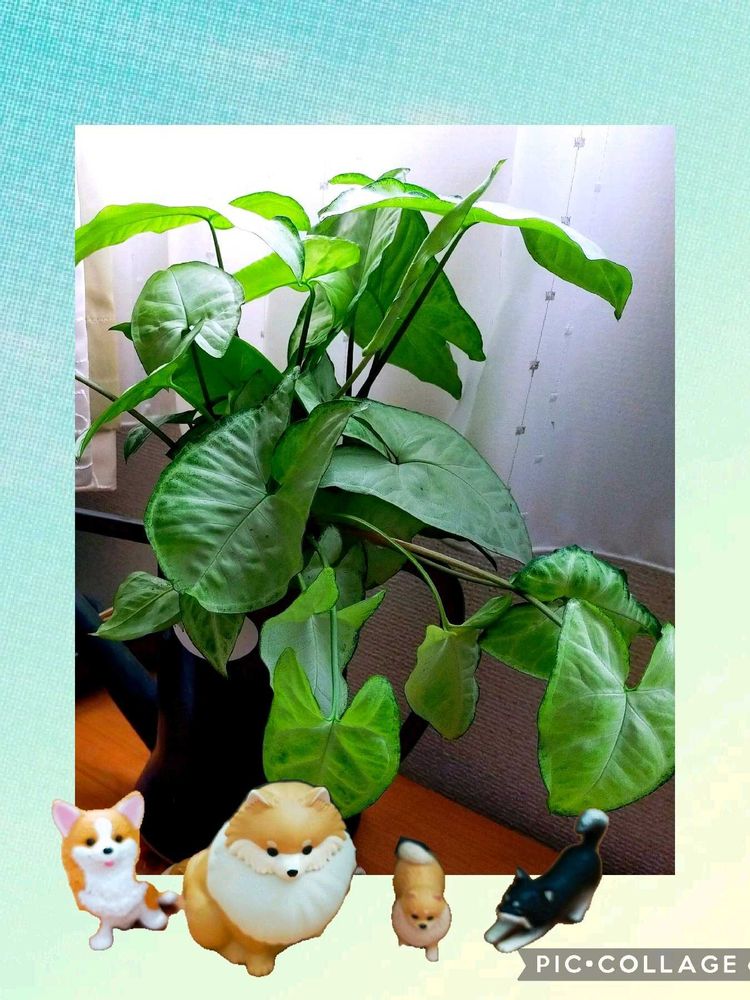 5枚目 4枚目のサンセベリアを植え替えたプランターはこのシンゴニウを植えていたんだけど、ぐんぐん伸びて葉っぱが重くて倒れてきていたの😅💦
