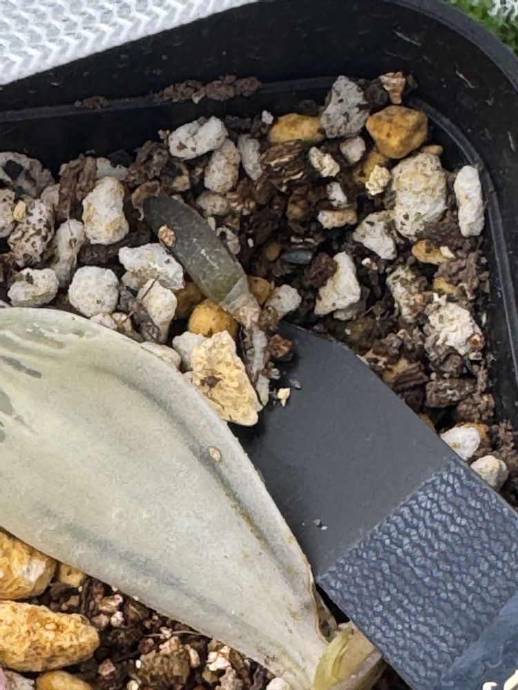 ハオルチア白蛇伝の葉挿しの葉から取れてしまった小苗😢