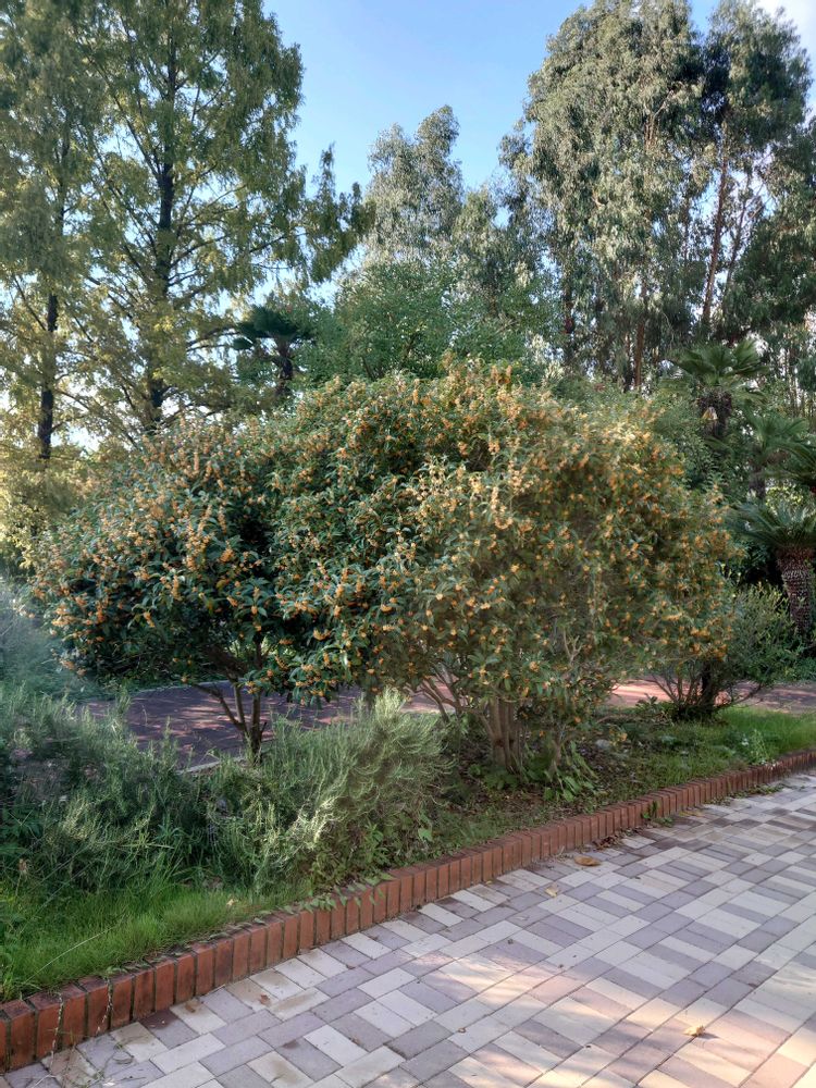 日本の三大芳香木のひとつらしい金木犀、あちこちにあるようですがこれはスペイン庭園の近くにありました🐕…