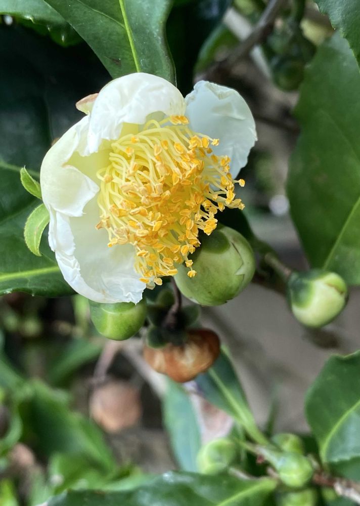 ご近所さんの生垣に咲く、お茶の花🍀