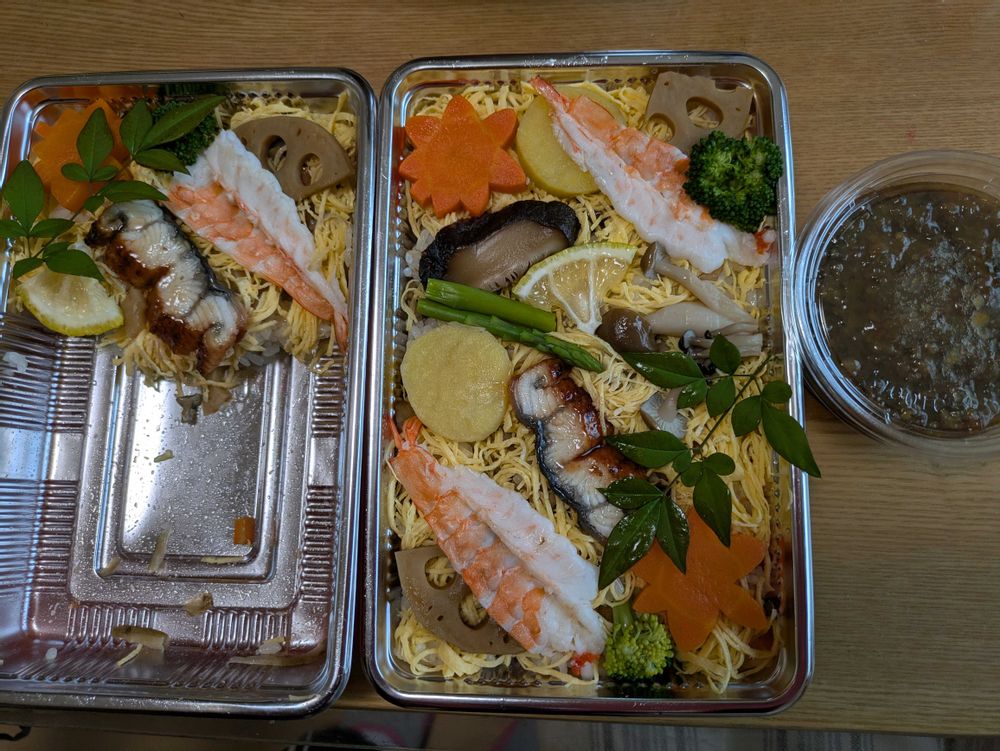 いつもトッピングには手の混んだ季節の 細工が施してあります 因みに今回はウナギの蒲焼きも入っていました 有り難いです😊