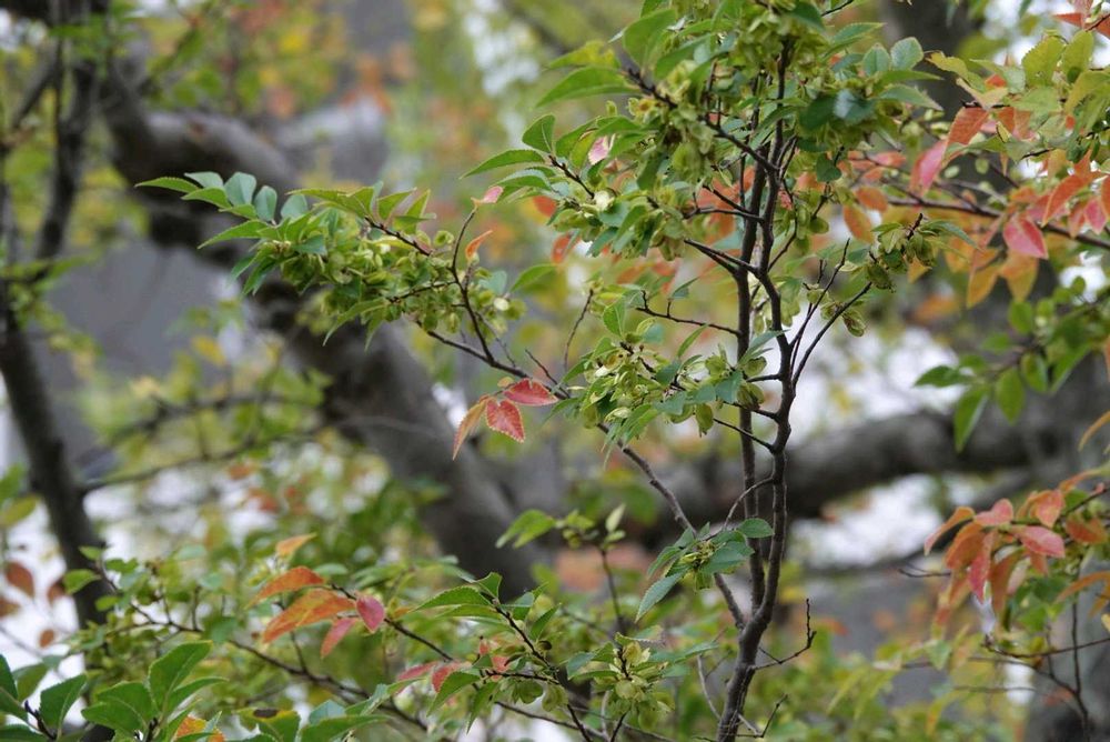 大好きな秋楡(アキニレ)は少しずつ🍁しています。たくさんの翼果をつけ葉を落としても暫く翼果だけ残ります。