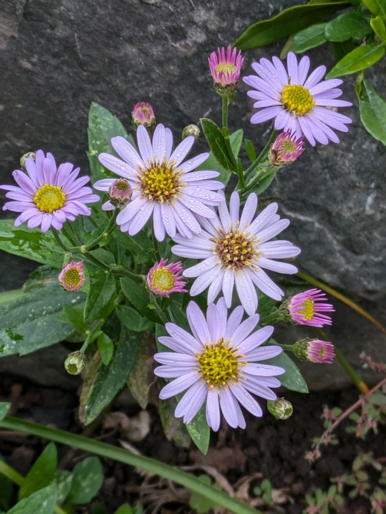 山で採ってきて花畑に植えたのですが、性に合わないわとばかり、石垣に飛び出して元気に咲いています。