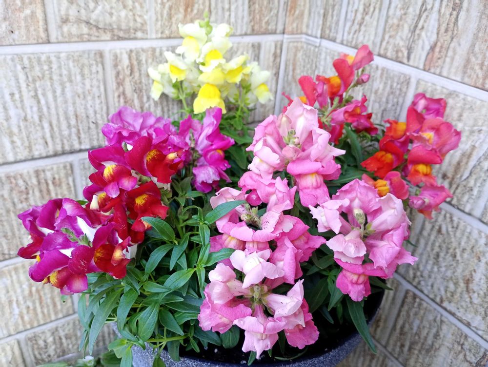 今日はこの後☔予報です📡が…、玄関先も花色が随分と減り、カラフルなキンギョソウ💛🧡❤️🩷を購入、植え込みました🥰