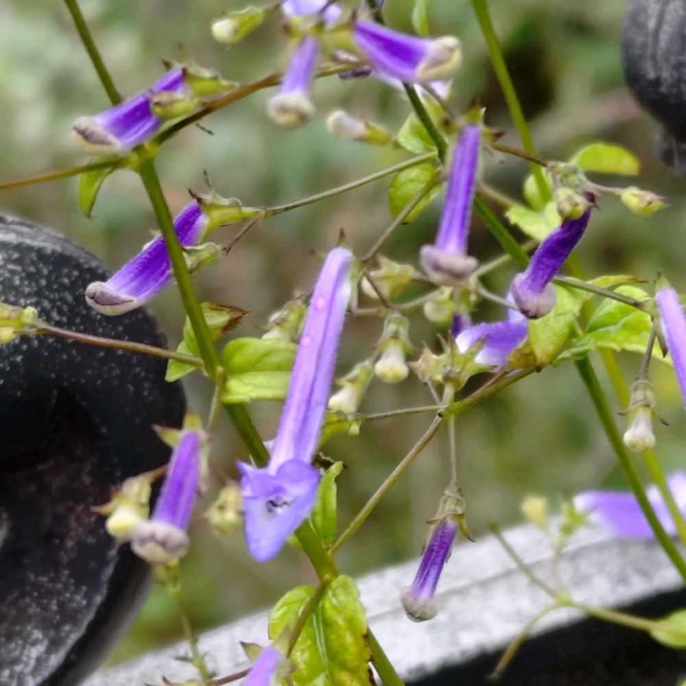 我が家の寄せ植えの鉢植えから面長な顔の花が咲き出したよ〜💜