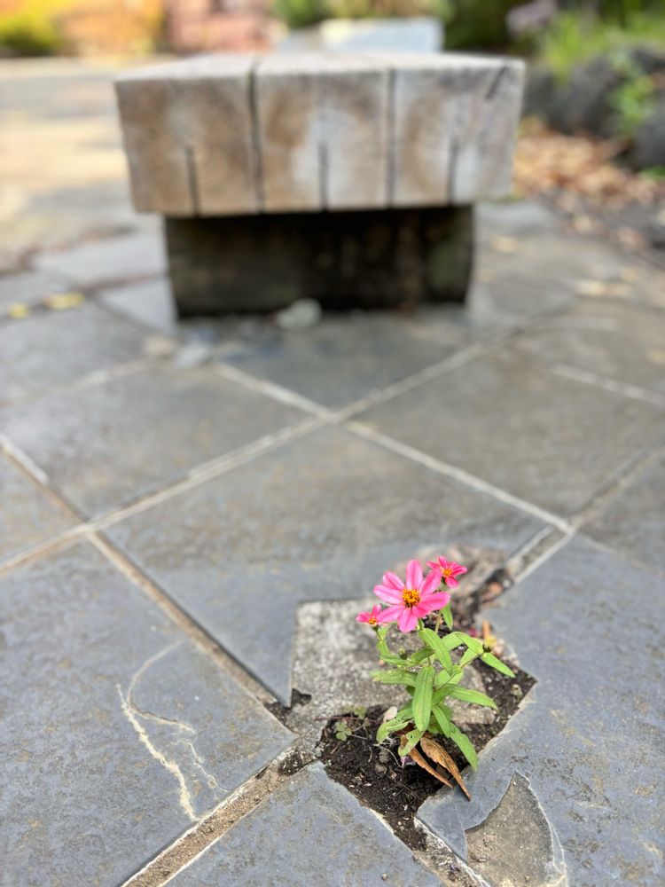 溢れ種が飛んで全然違うところに咲いてたジニアが可愛すぎる🫶