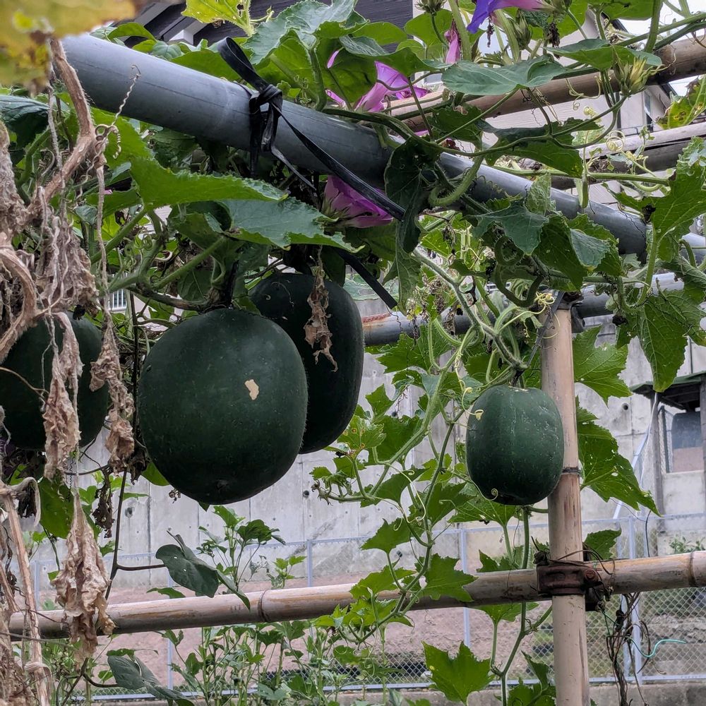以前にも関西方面の方で丸型の冬瓜をたくさん実らせてる方とお話しした事があります。 こちらではあまり見かけないんですよね~ 🤔
