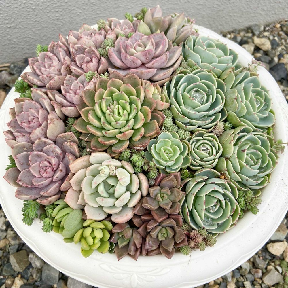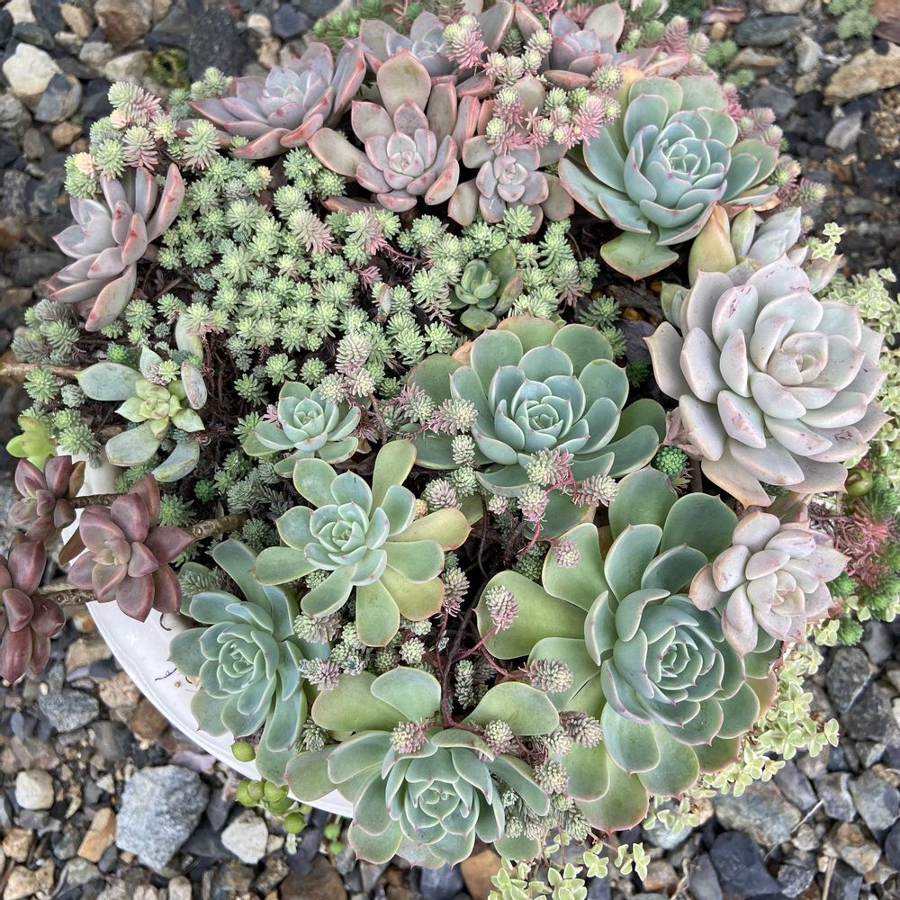 セダムは伸び放題、七福神はパカーン、ブロンズ姫や春萌も伸びて茎が長くなっちゃった😅💦