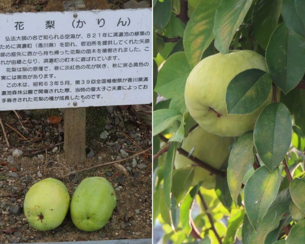 ①カリン(善通寺境内):天皇皇后両陛下(当時皇太子ご夫妻)お手撒きの種から成長。