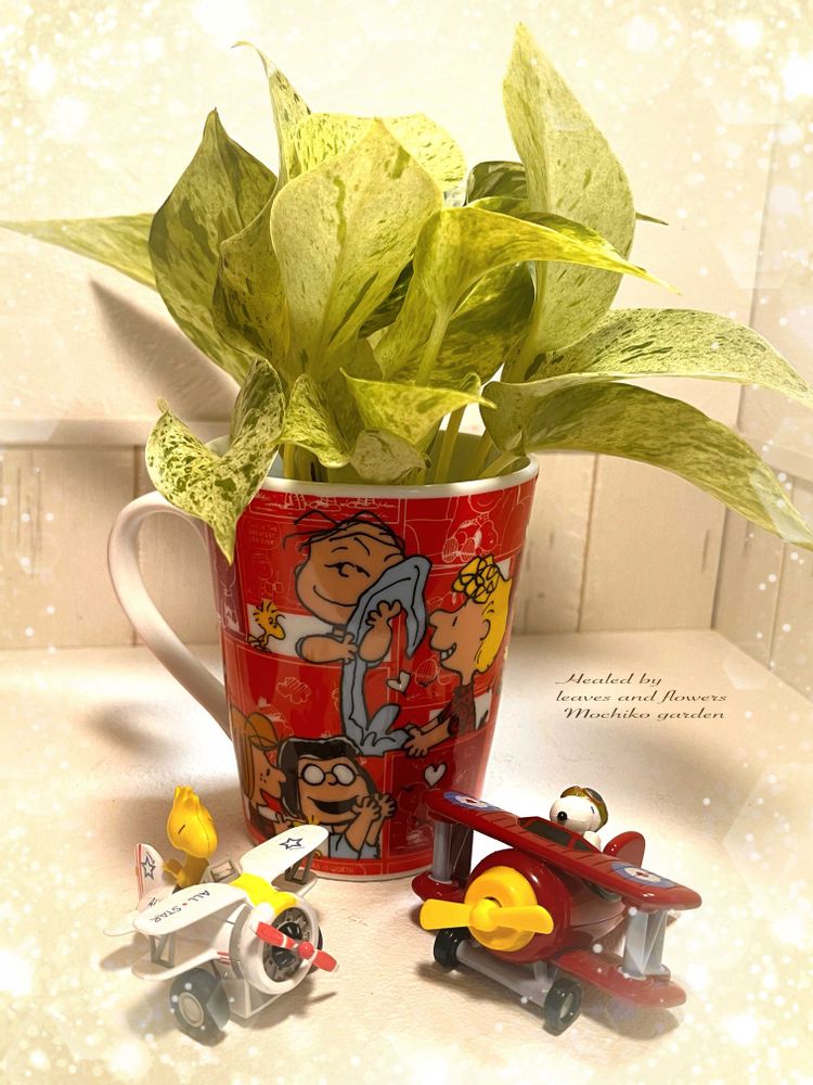 斑入りだからスヌーピーのカップで