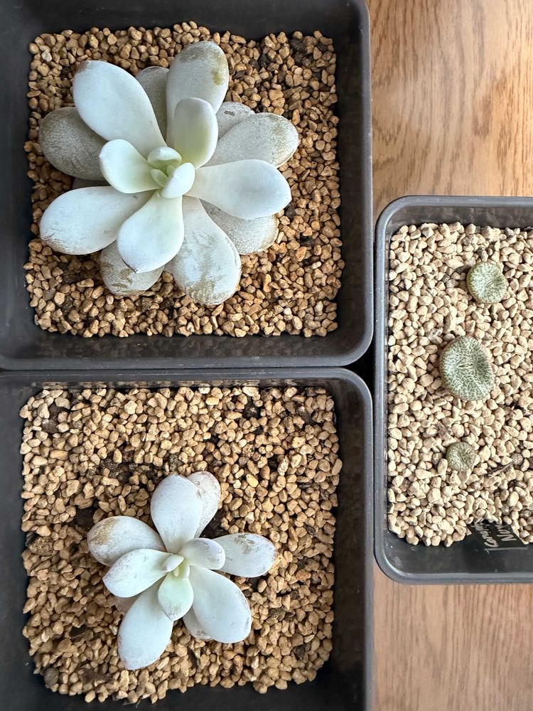 ラウイは実生で種から育てたのですが、今年の春前は右のオブコルデルムくらいの大きさでした。