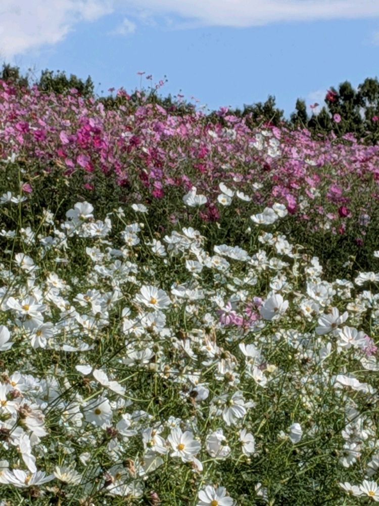 大好きな公園で春、夏前、秋、何回も行きましたが、昔はコスモスの丘には、コキアとかミュレンベルギアとかなくて、コスモスオンリーでした😅