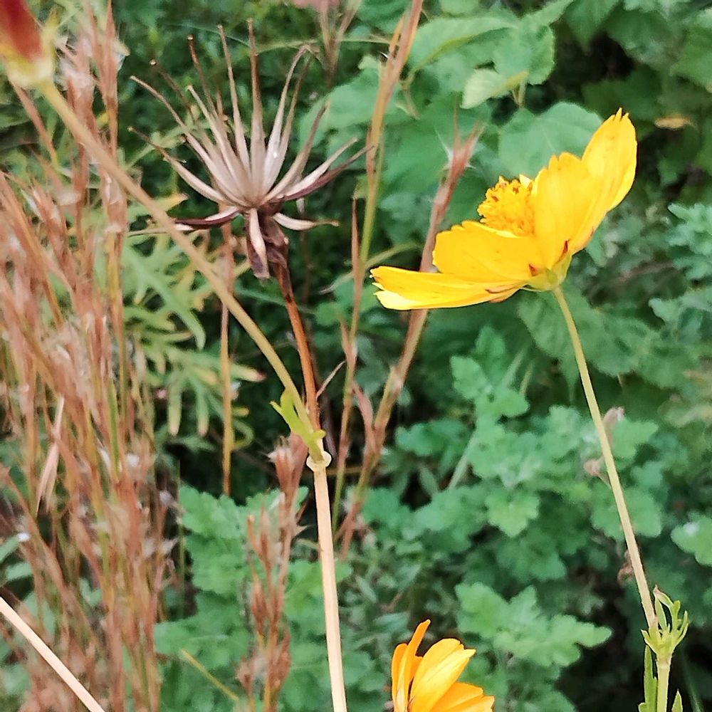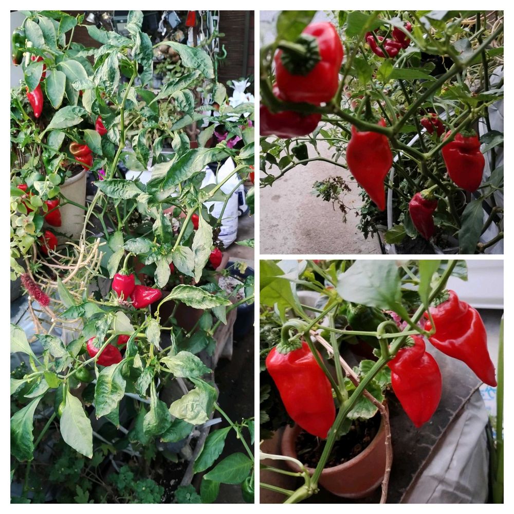 ガレージのプランター植えのピーマン真っ赤で可愛い、食べるより飾りたい🤭道の駅で買った可愛い花と、公園に植えた花と種、来年は何倍にもなって芽が出るよ、コンビニ帰り蜘蛛の糸にぶら下がる蝉の抜け殻が風に揺れてる
