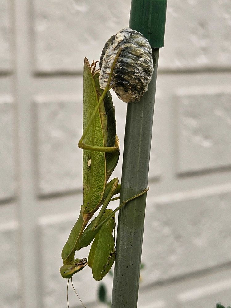 この可愛いキンギョソウの支柱にカマキリが‼️しかも卵まで‼️