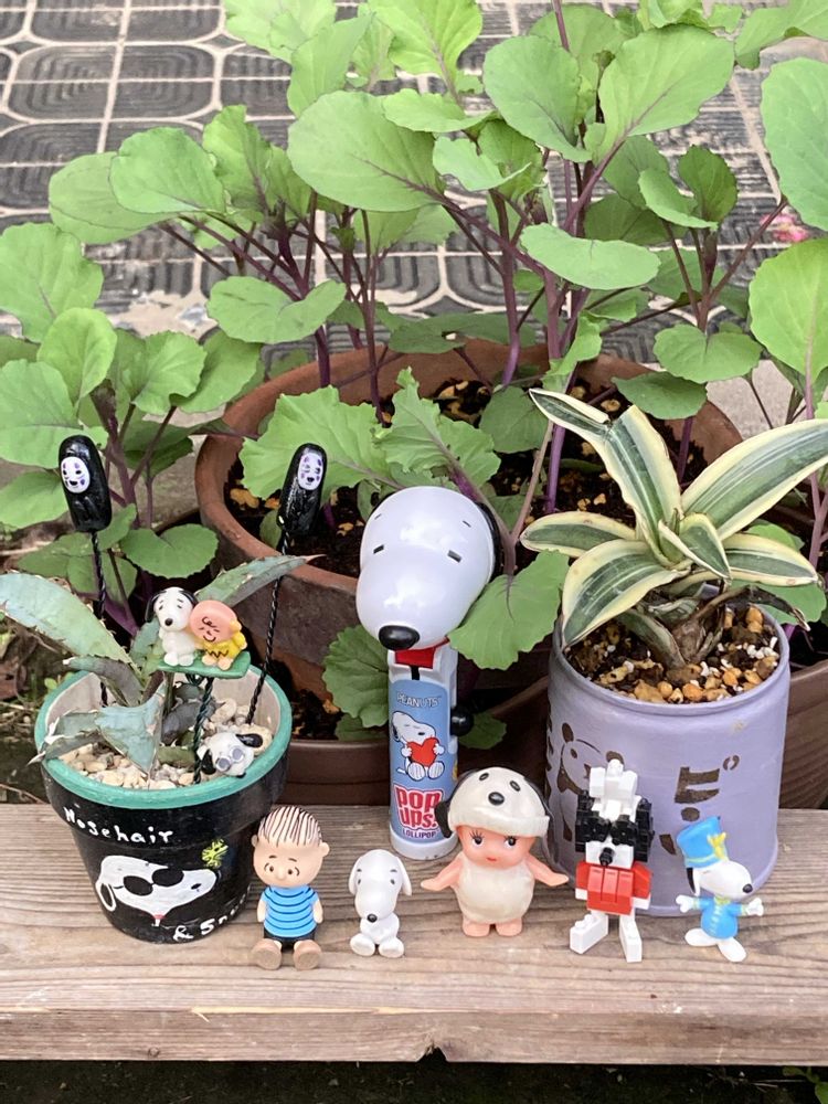 後ろの葉っぱはえみままさんにいただいた葉牡丹を種から育てています。