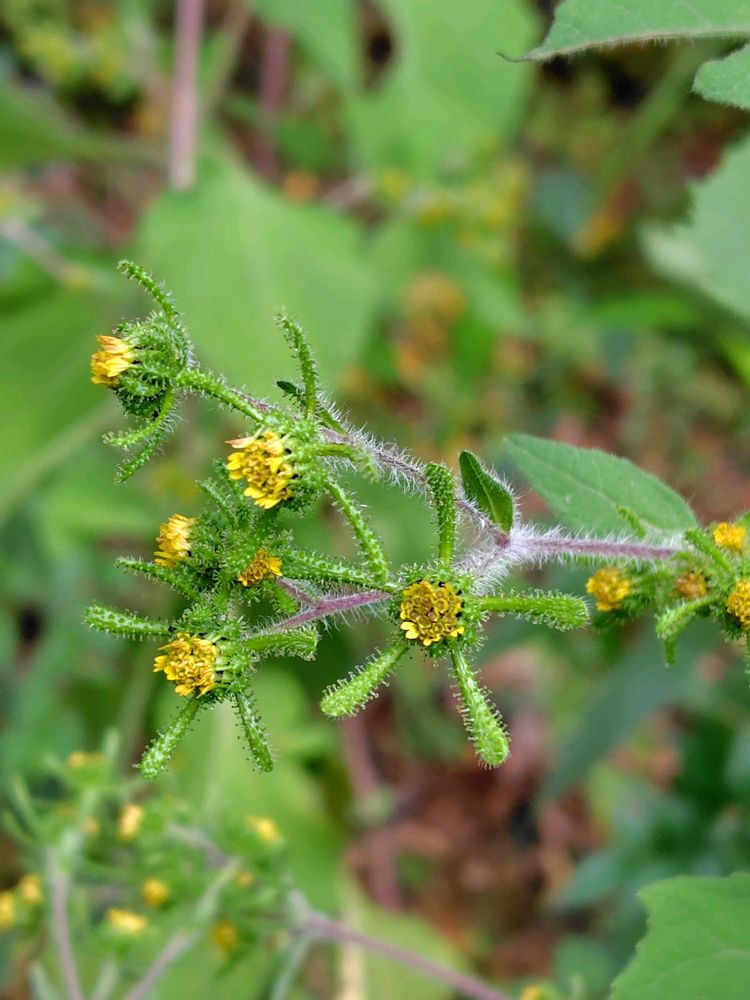 頭花は黄色で、頭花の周辺に3裂した舌状花が付き、中央に5裂した筒状花が付く。