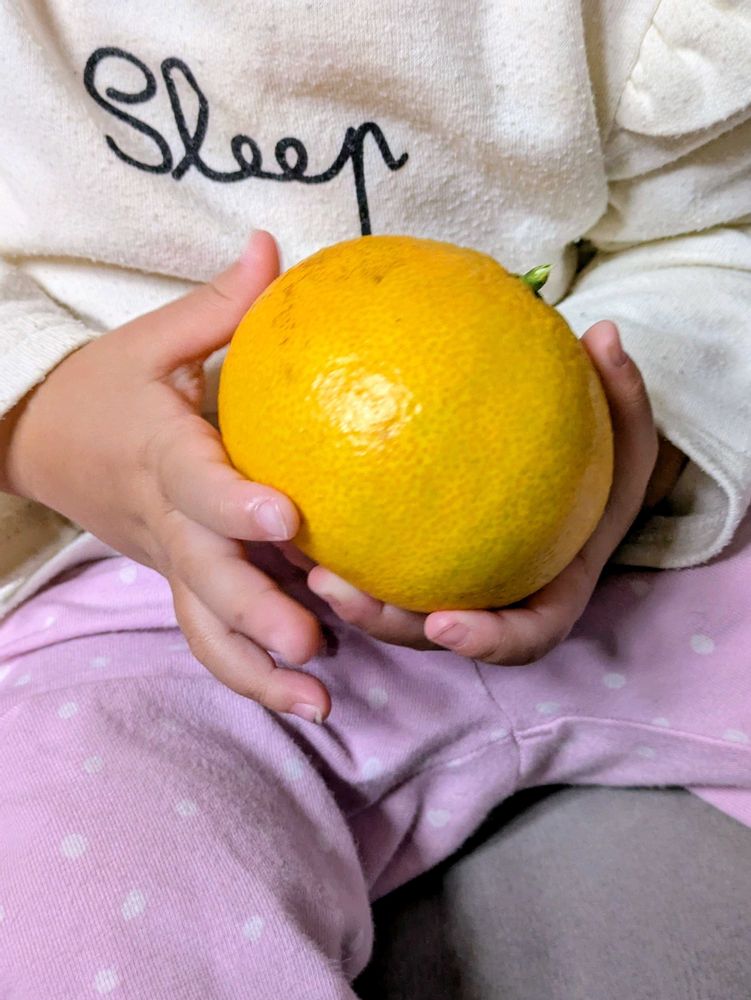 孫ちゃんの両手に包みきれない大きな蜜柑🍊