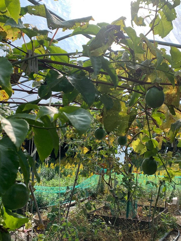 パッションフルーツ🥭色付いてきました。17個ぐらいできてます。