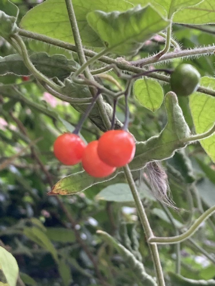 *ナス科の多年草とのことで、木では無いです。茎は細い乍ら木質化していて、木のように見えました。