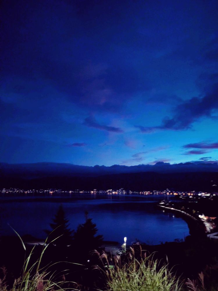 夜明け前の諏訪湖、息を呑む美しさやったよ❣️