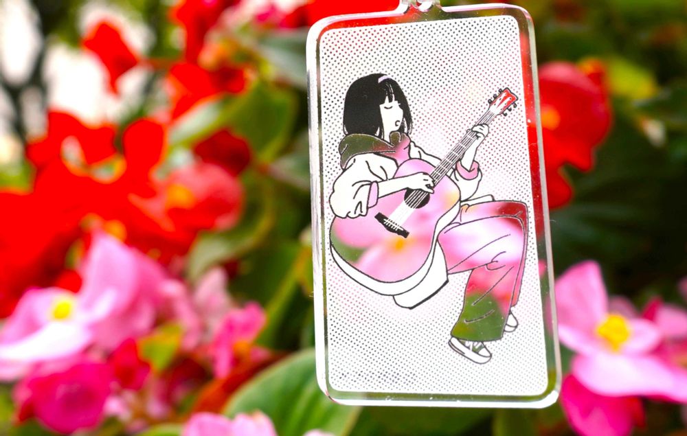 ピンクの花の上でギターを奏でてるすみれちゃん、とっても素敵です🩷