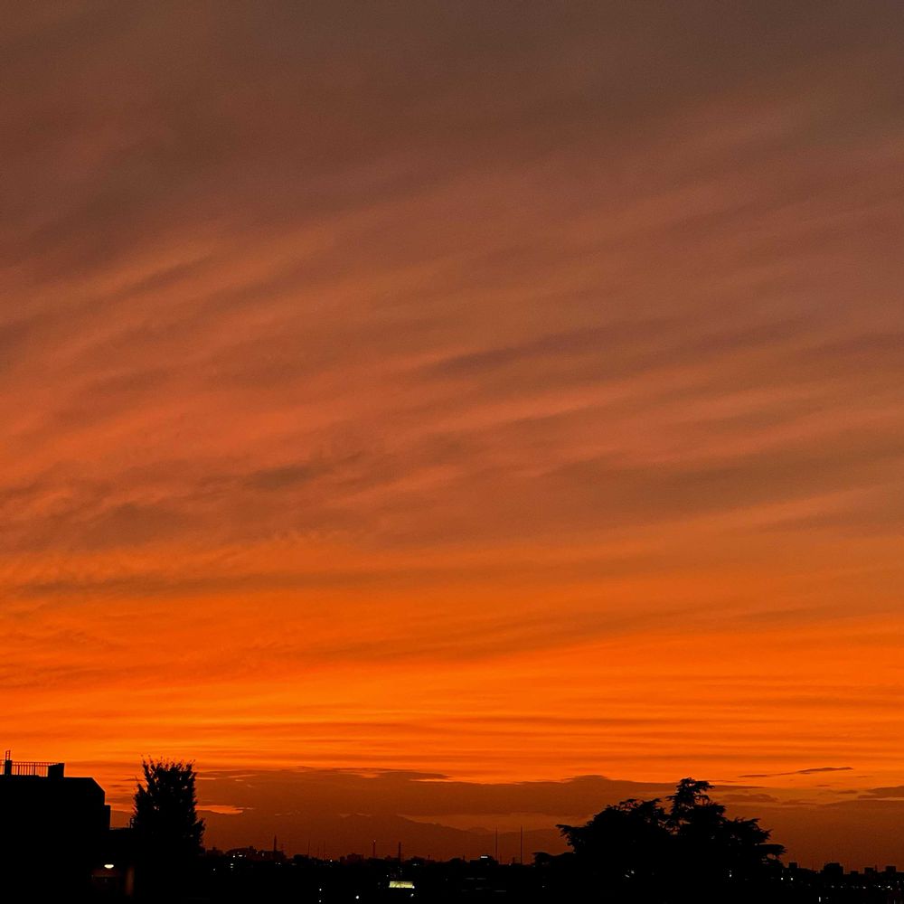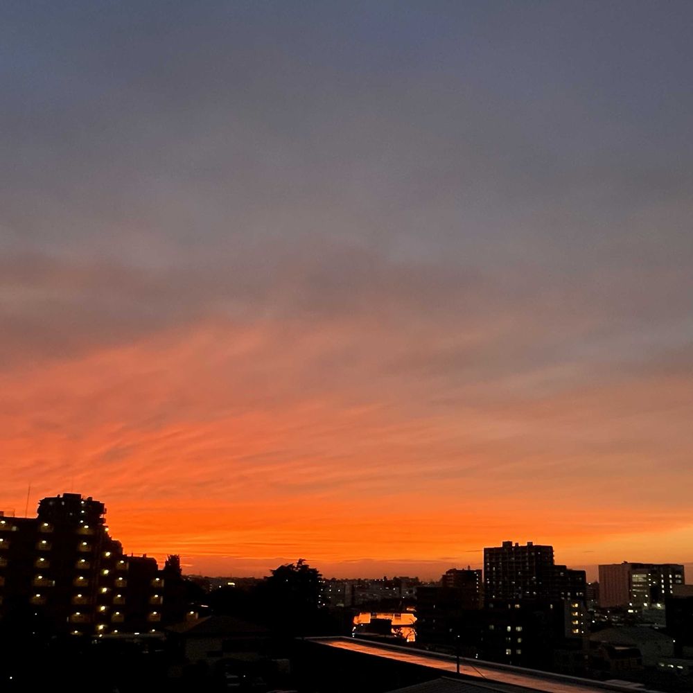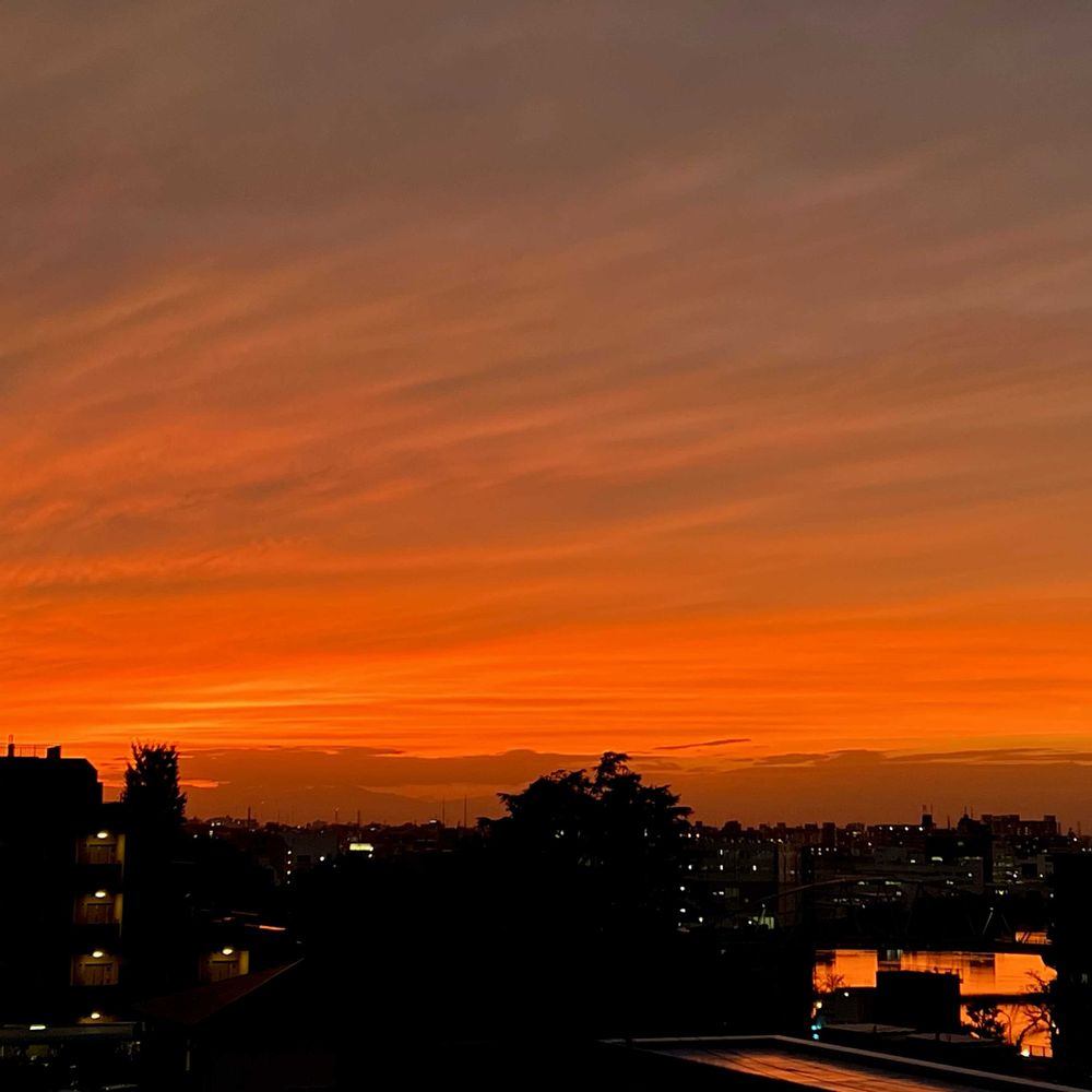 久しぶりに紅い夕焼けだなぁ、と撮りました🌇川まで紅くなりました。