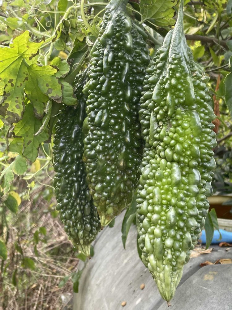ゴーヤまだなってるんかい😲。色艶よくて美味そう😋。二本食べて一本は種子作って来年栽培でお楽しみ下さいね😊!