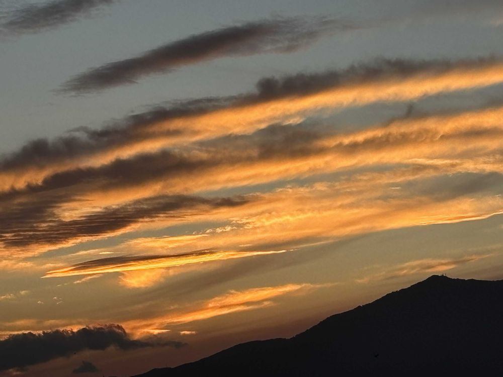 ちょうど日没後、何雲☁️って思うほど、不思議な雲の形に、夕焼け色が映って、神々しい感じでした✨🤩