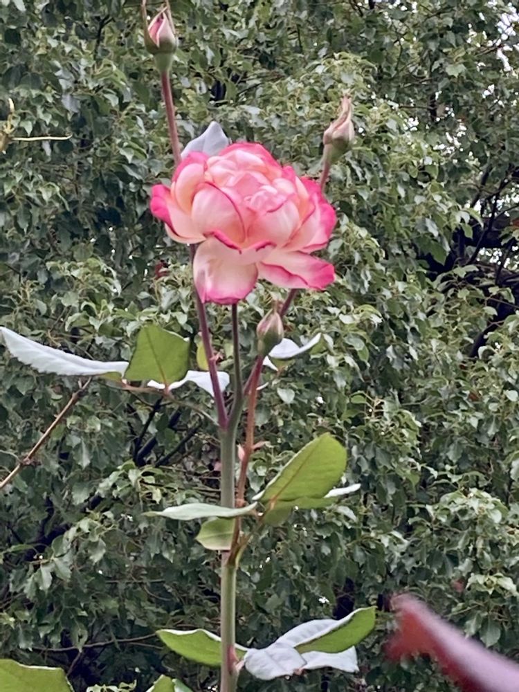 日比谷公園 第一花壇の"自由の女神 ルーパ・ロマーナ像"の左端で今咲いている「バラ アキレス」。