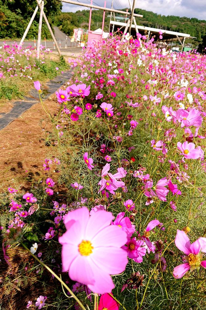 毎年行く白木峰のコスモス畑は今年は猛暑で駄目らしいのですが、ばら園入り口近くの臨時野菜屋さんのコスモスが綺麗でした🎶