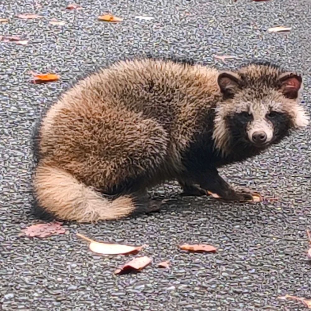 なんと白昼堂々タヌキ🦝が道路の端っこに😲