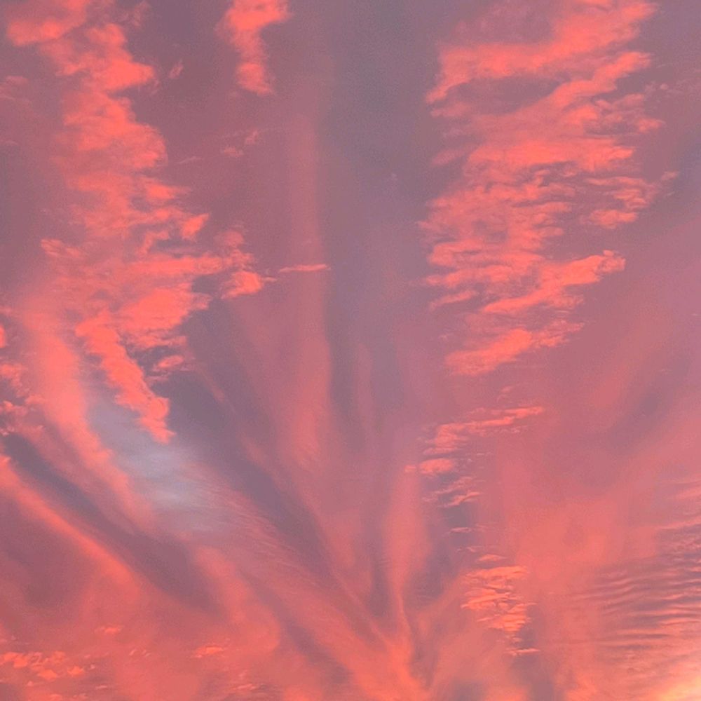 お花はテニスコート🎾脇に咲いていたオキザリス✨、そしてお空は昨夕の南側の方角で見た綺麗な赤焼けの空です🌇