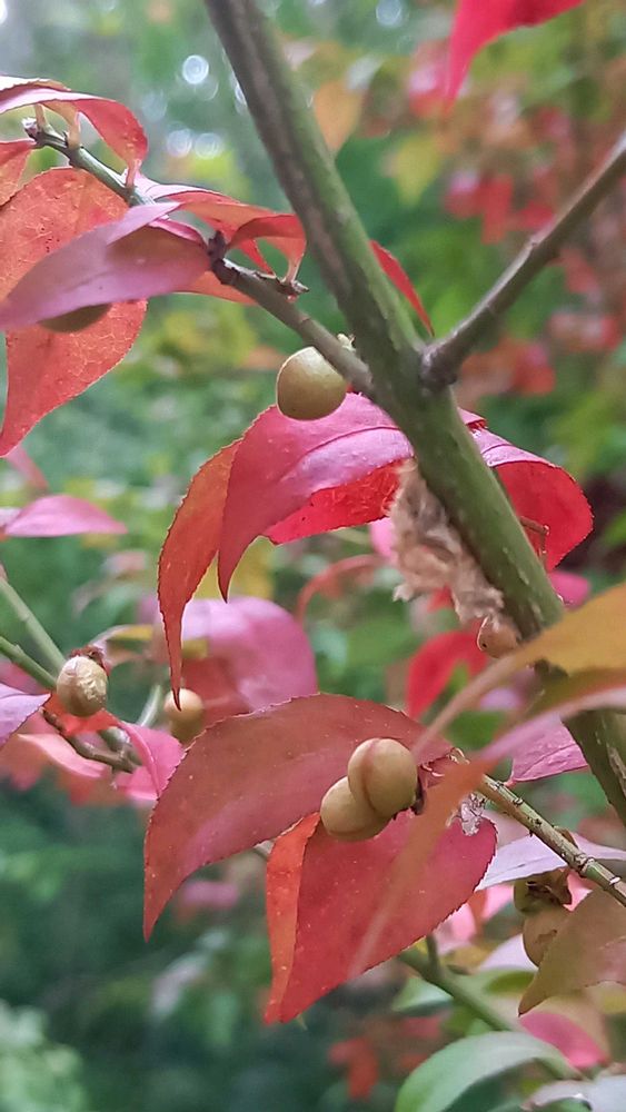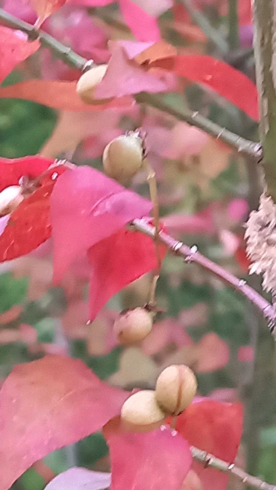 ウォーキング中に一際(ひときわ)紅葉の綺麗な木がありました。マユミでいいのかなぁ❓