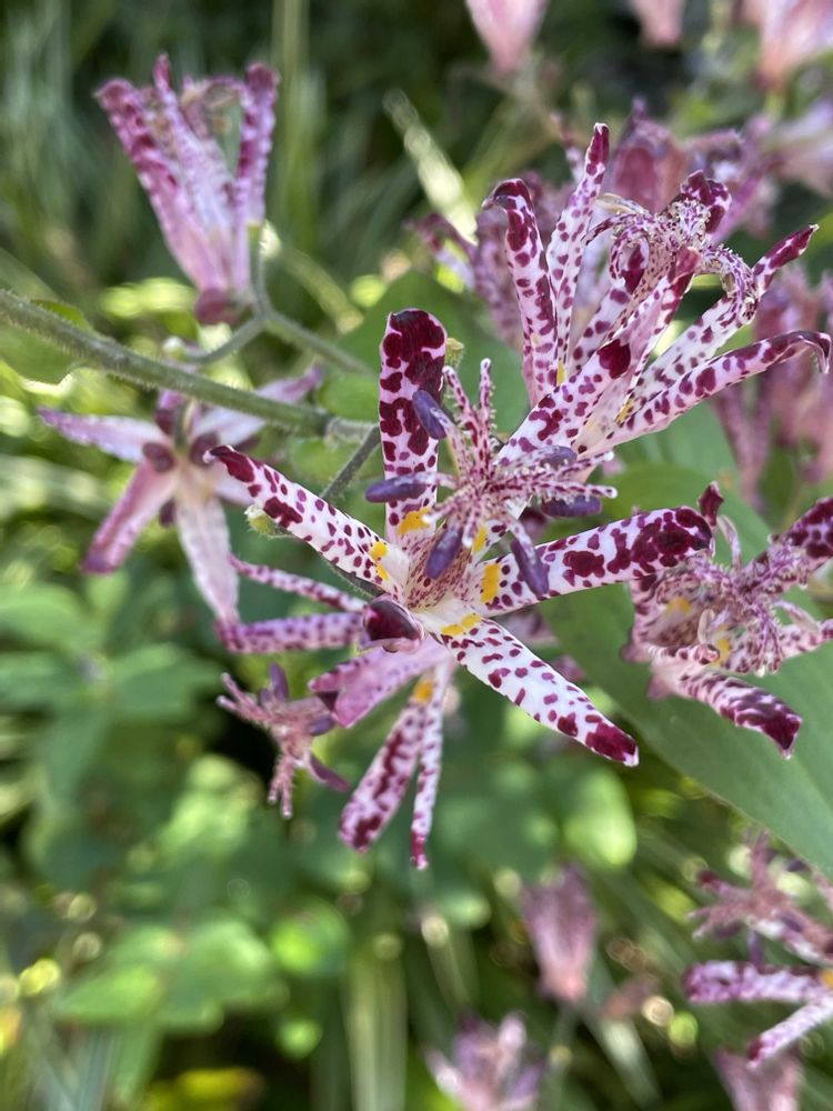 白いお花のホトトギスは花期が終わりましたが、このホトトギスはまだたくさん咲いています♪