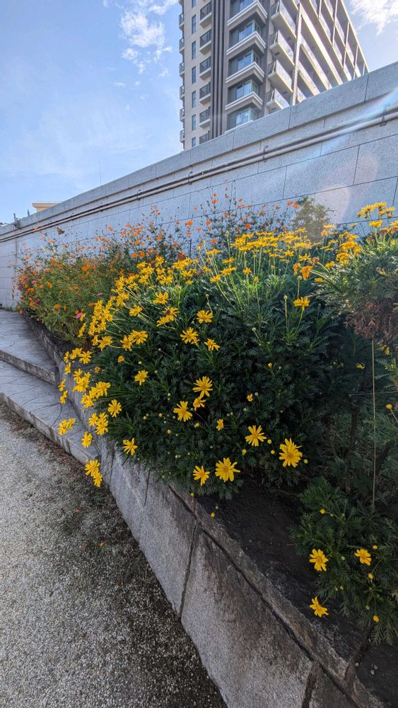 散歩道🚶、ユリオプスデージーが咲いています🌸🌸