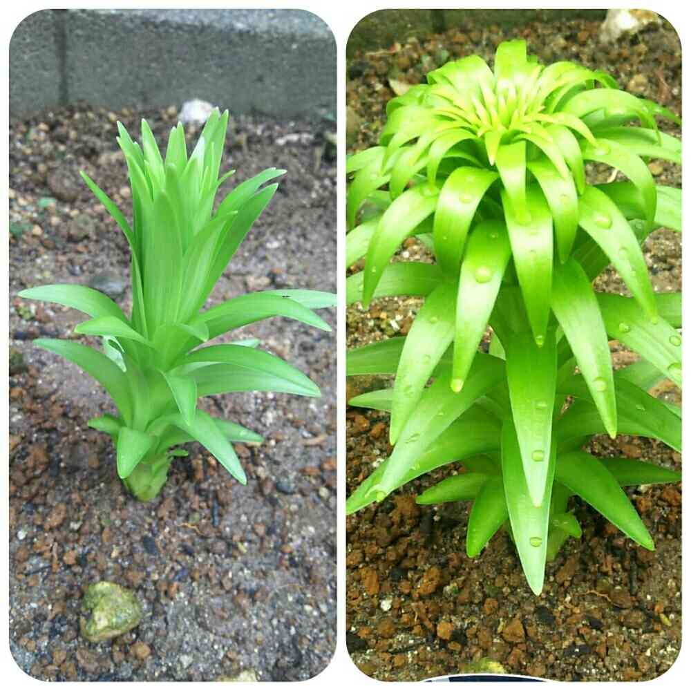 ユリの苗を買って庭に植えました🌱右が今日です(^-^)