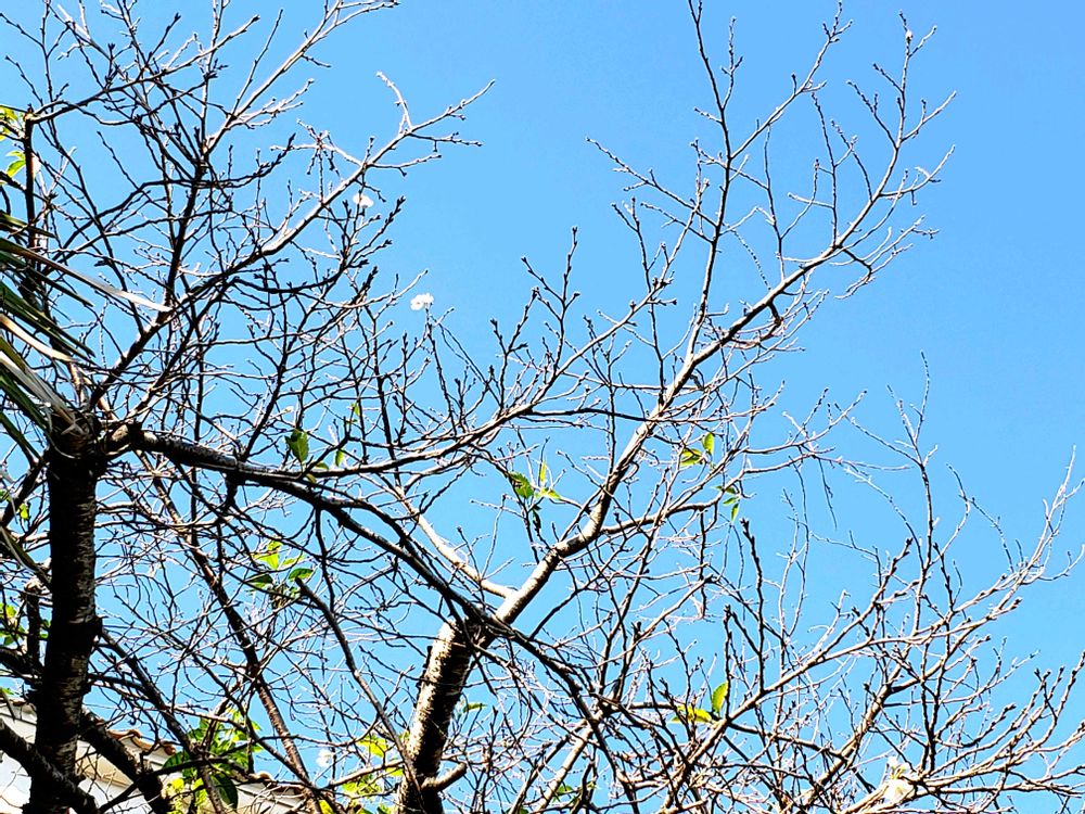 勤め先の桜の木が2輪の花を付けていました 咲く季節を間違えてしまったようです