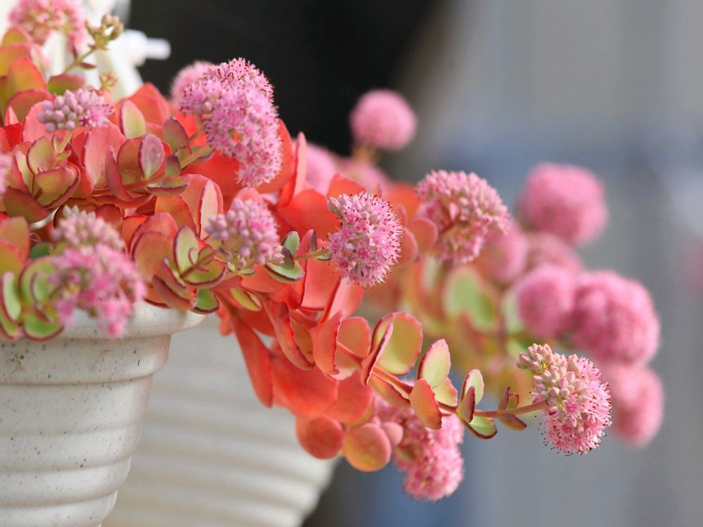 透き通るような紅葉とピンク色のポンポンしたお花が目にも優しい感じのミセバヤでした👍