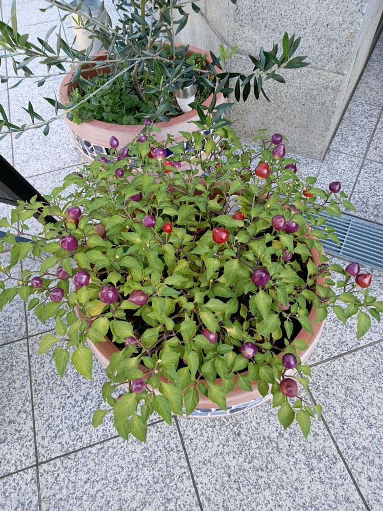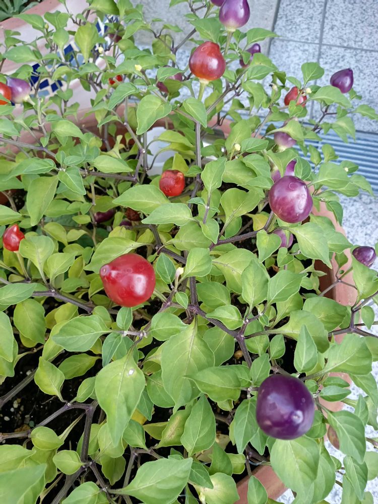 観賞用の唐辛子、ツヤツヤ色鮮やかで可愛らしいです✨️❤️💜💞💫