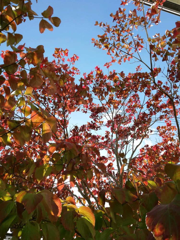 庭の花水木の紅葉🍁が青空に映えてきれい