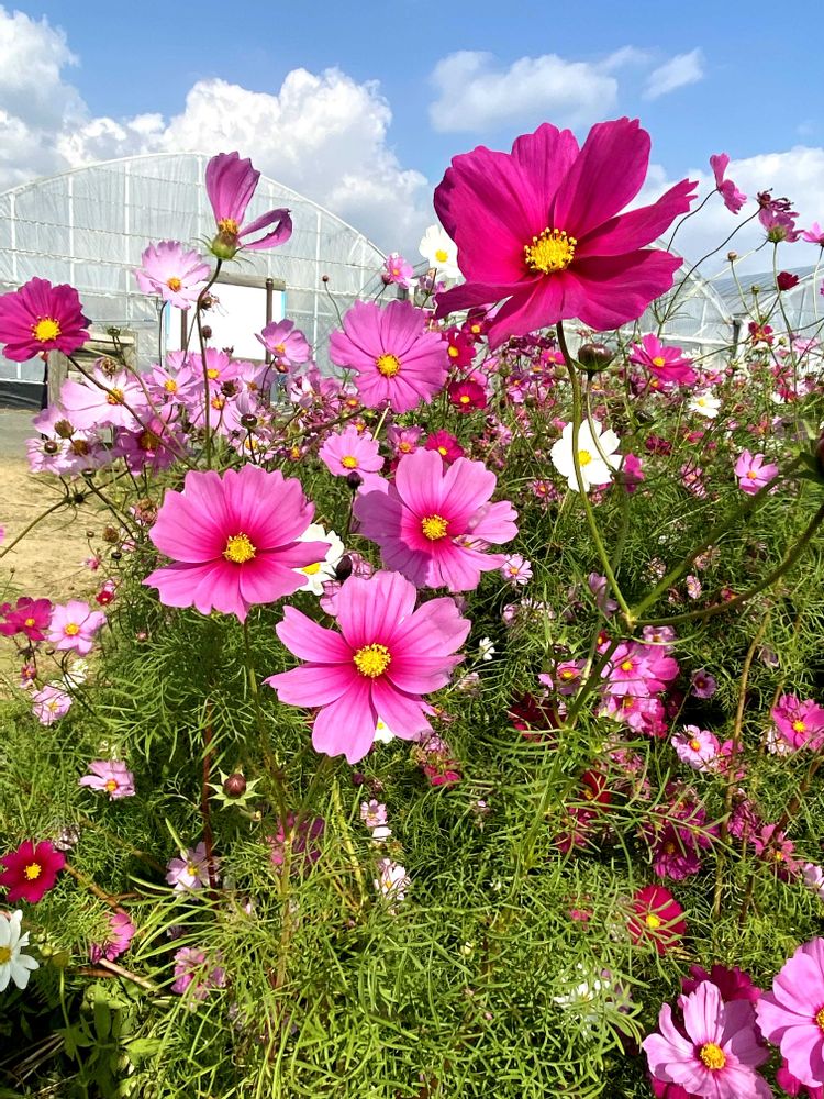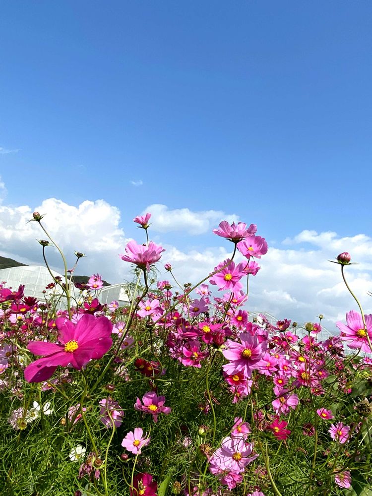 秋晴れにコスモスが映えてる⸝⸝💙🌸☀️´-