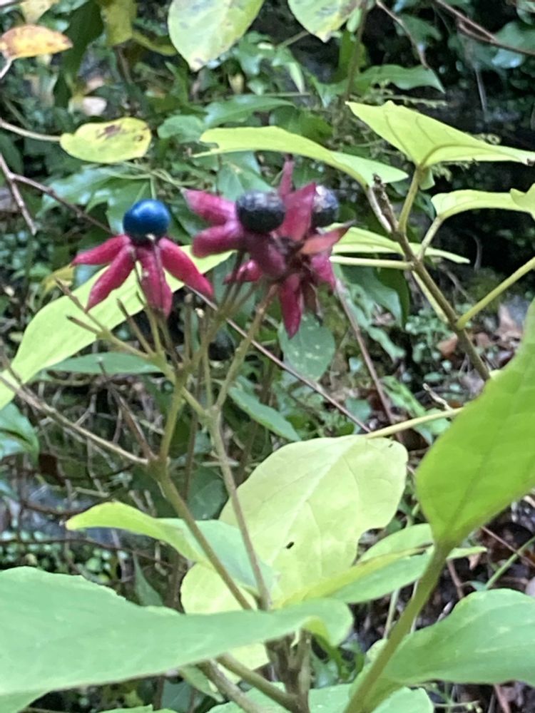 赤い萼と、青い実の色合いがいいですね😊