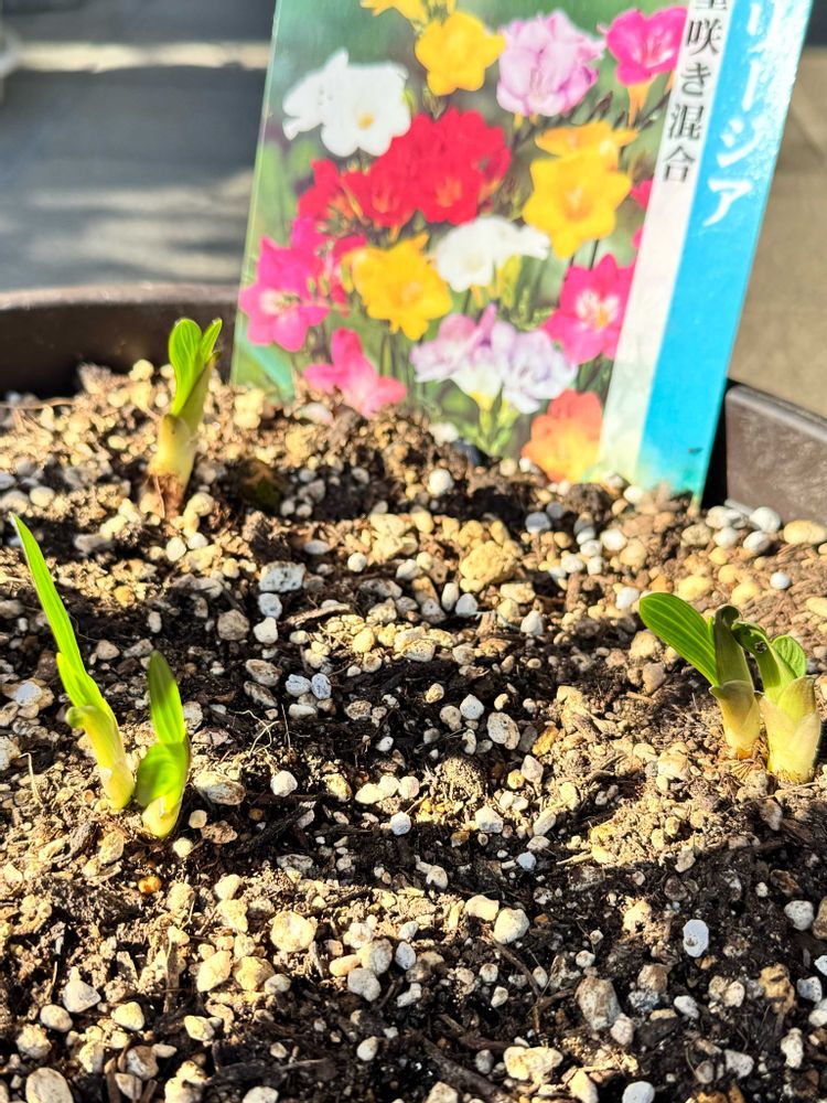 芽を出したフリージアさん🌱🌱🌱🌱🌱