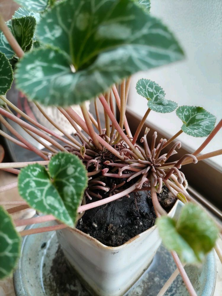 シクラメンの葉🍀がようやく出そろい、お花の赤ちゃんが👶