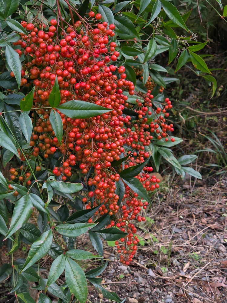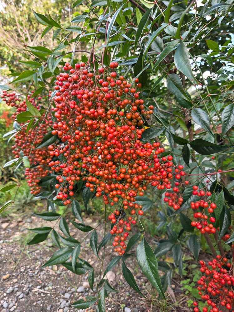 ①②となりのお婆さんちの南天。たわわに実っています😆