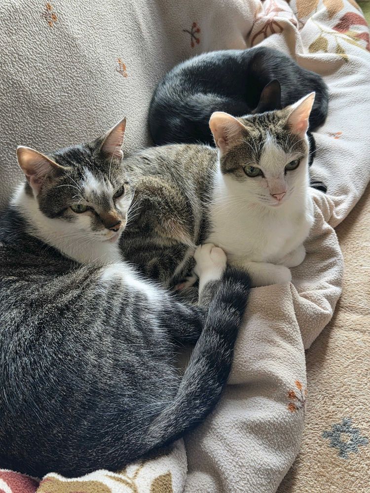 ③🐱猫達コタツで丸まっています。ってか外では丸まっていますが、コタツの中では、5匹それぞれが伸び伸び伸びて寝ているので、私ら足伸ばせません🤣🤣🤣