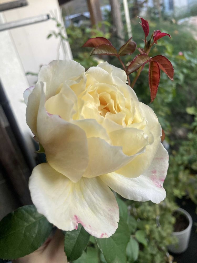 花びらたっぷりの深いカップ咲きになってスーパーかわいいですが、つる仕立てにしているせいか、春以降はぽつぽつしか咲ません‥