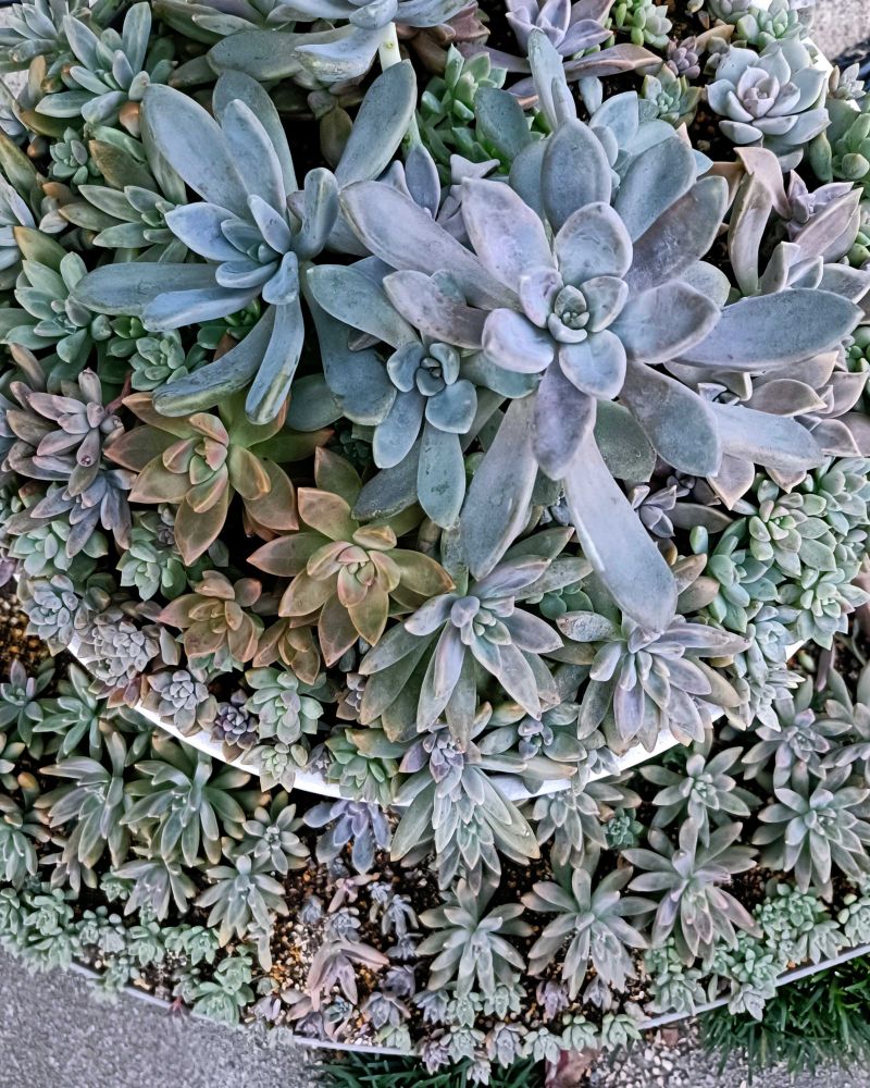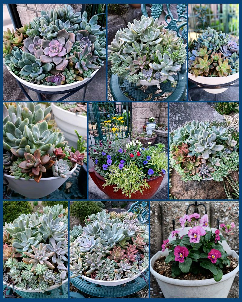 ポイポイ花壇や前年の寄せ植えから多肉さん集めて作りました。